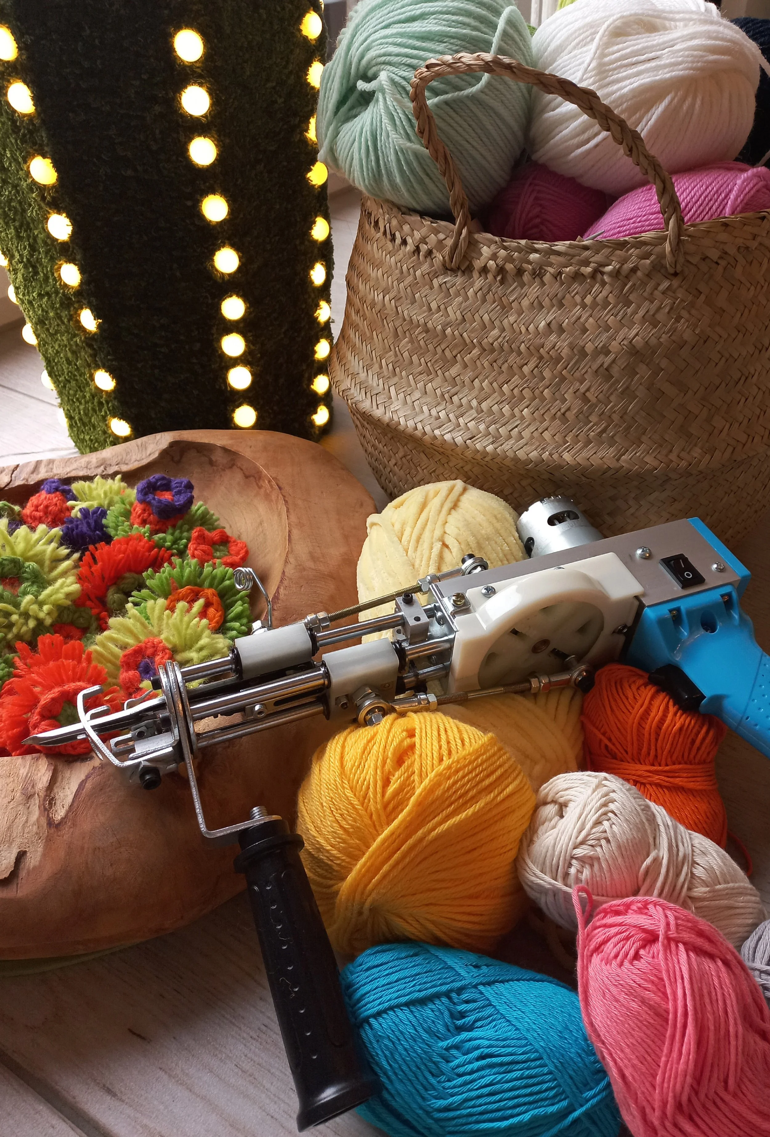 spezialisiert sich auf die kreative Anwendung der Tufting-Technik, einem innovativen und vielseitigen Verfahren, bei dem mit einer speziellen Tufting-Pistole Garn in ein Grundmaterial eingearbeitet wird. Dieser Prozess erlaubt es, kunstvolle und lebendige Designs zu erschaffen, die sich durch kräftige Farben, verspielte Muster und dreidimensionale Strukturen auszeichnen.